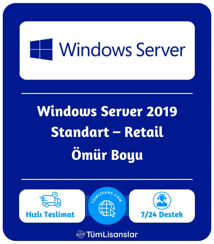 Windows Server 2019 Standart, modern işletmelerin güvenlik, bulut entegrasyonu ve sanallaştırma ihtiyaçları için tasarlanmış güçlü bir Microsoft sunucu sürümüdür.